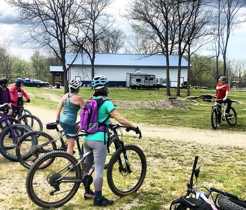 Mountain biking skills instruction.